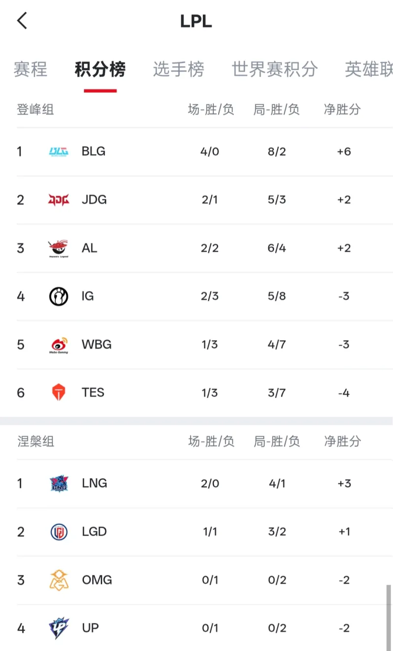 开云体育平台-LPL战队排名变化:iG凭两胜升至第四,WBG和TES位列第五、六