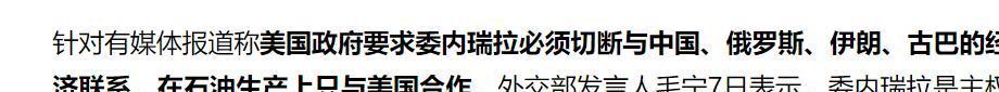 美国广播公司6日援引消息称,美方已明确要求委内瑞拉,必须切断与中国、俄罗斯等国的联系。