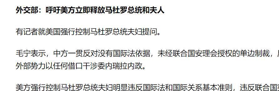 美国要求委内瑞拉切断与中国的联系,完全违反国际法,是典型的霸凌行径。
