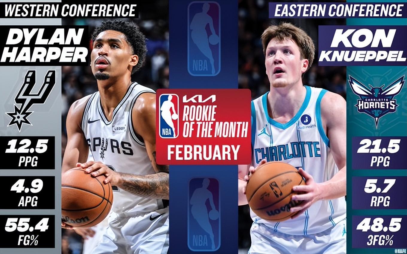 但弗拉格因脚伤在2月大部分时间缺阵,马刺后卫迪伦-哈珀成为本赛季首位非杜克系的月最佳新秀,斩获西部月最佳新秀。