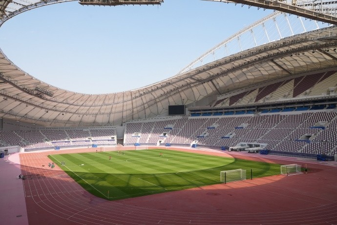 在经过抵达首日的休整与调节后,海港全队于今天上午10点30分在主教练穆斯卡特的带领下,精神饱满地出现在哈利法国际体育场,开启冬训的第一堂训练课。
